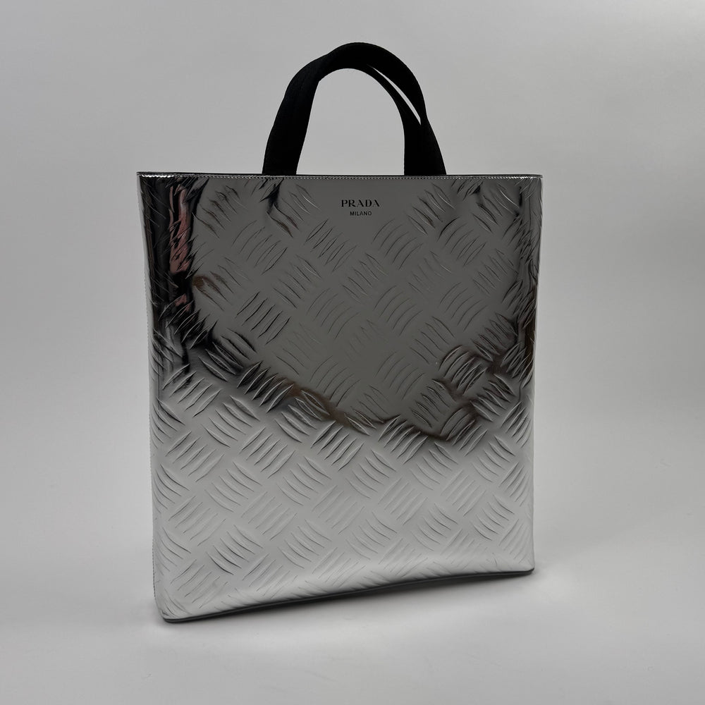 Prada Blue Triangle Logo Nappa Leather Large Tote Bag