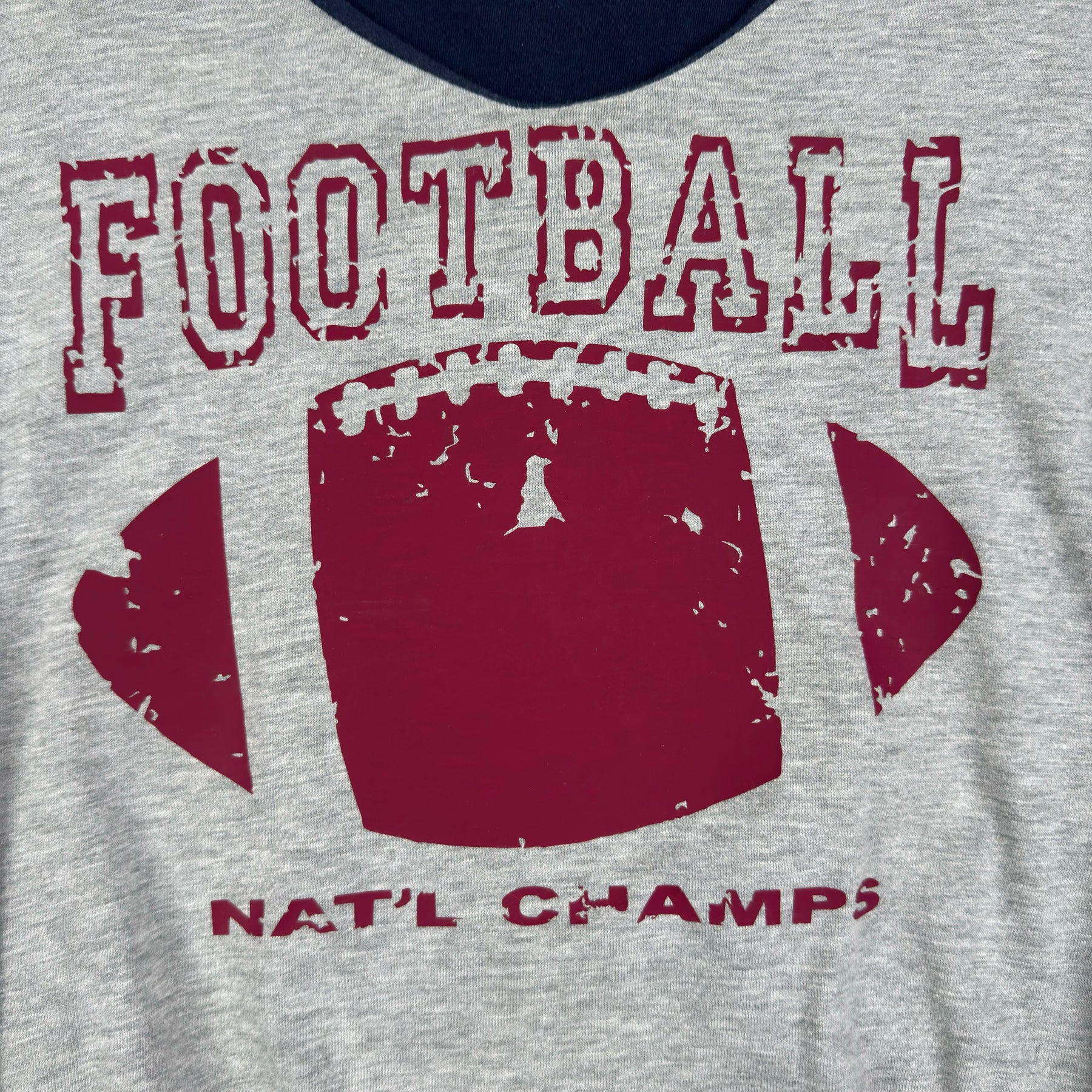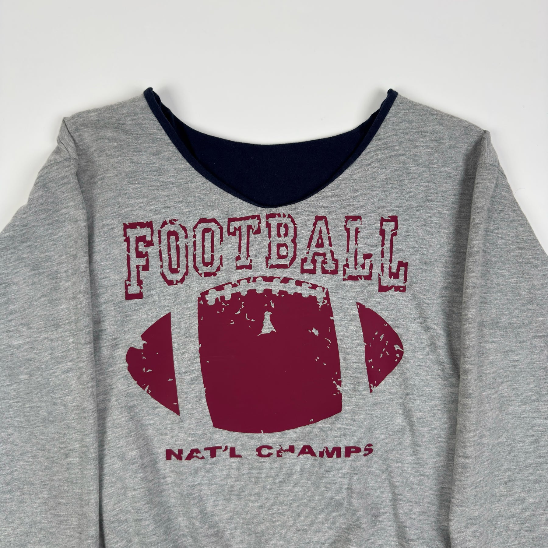 • - Burgundy "Football" print on the sweatshirt