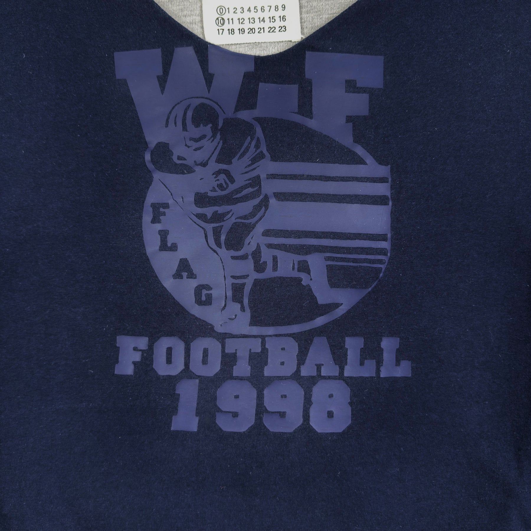 • - Navy "Football 1998" print on the t-shirt "vest"