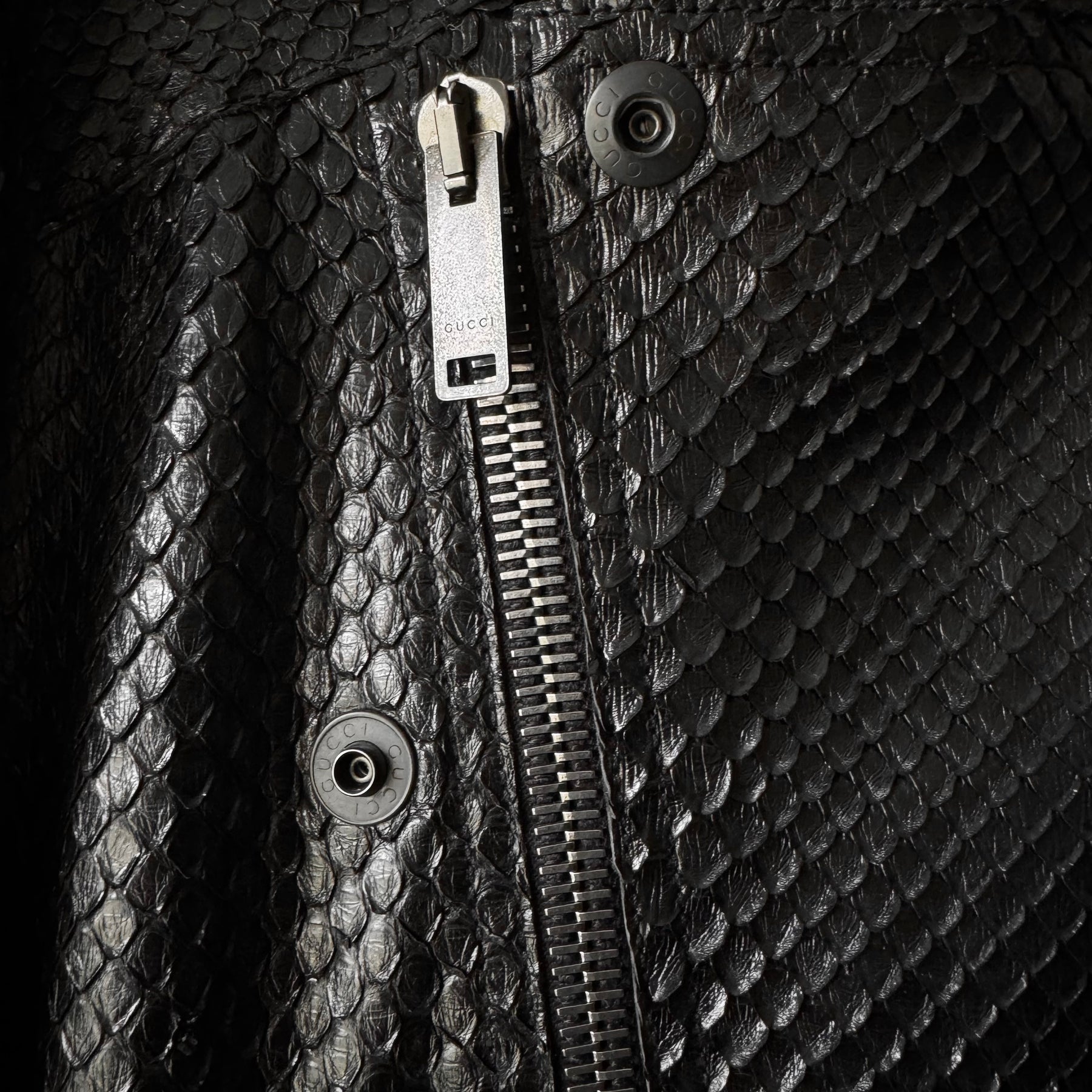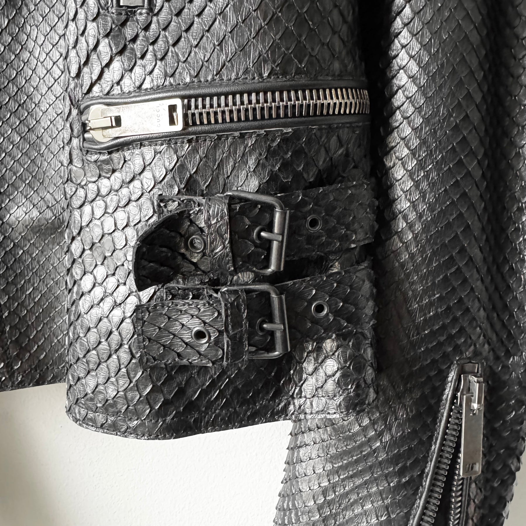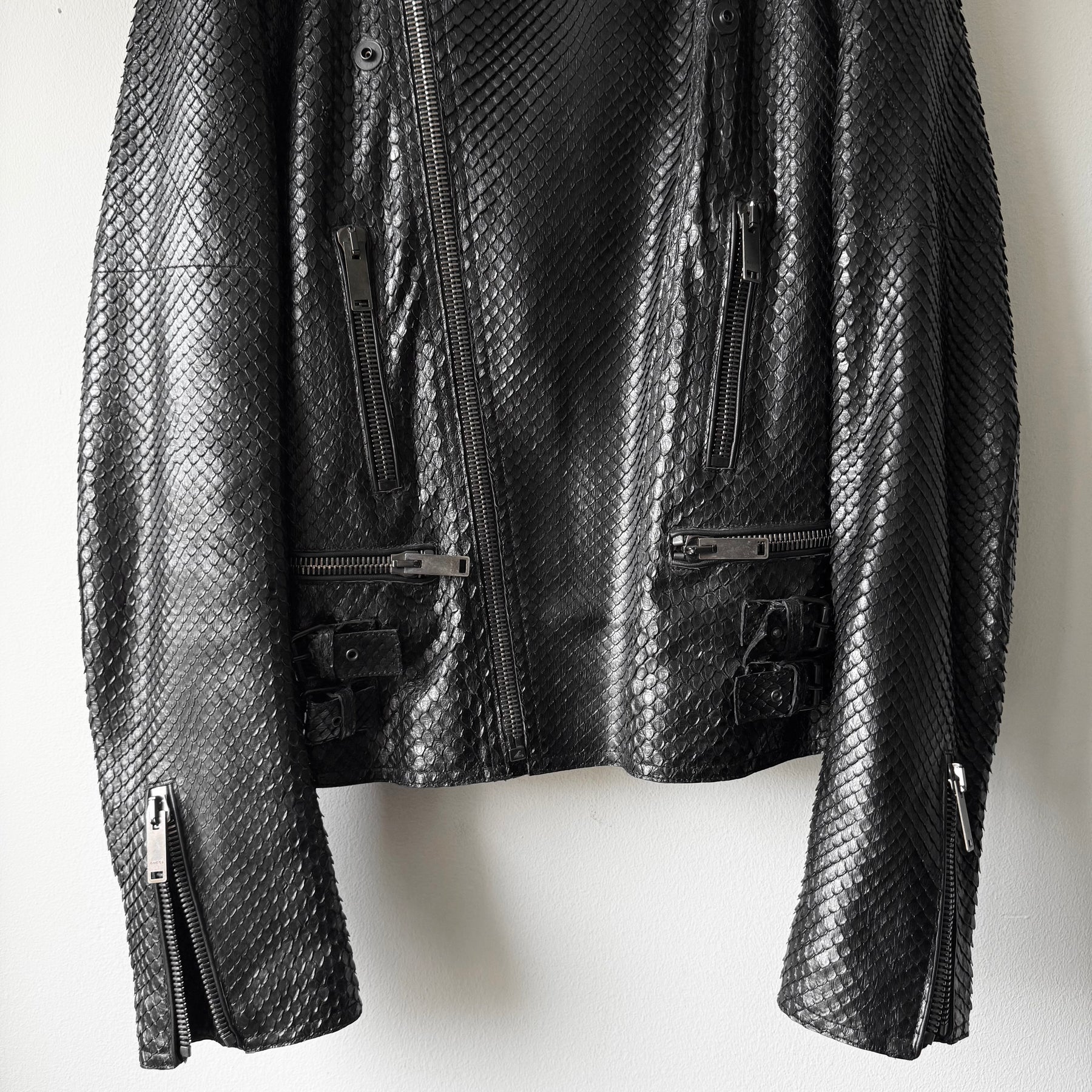 Gucci FW2006 Black Python Snake Skin Leather Biker Moto Jacket