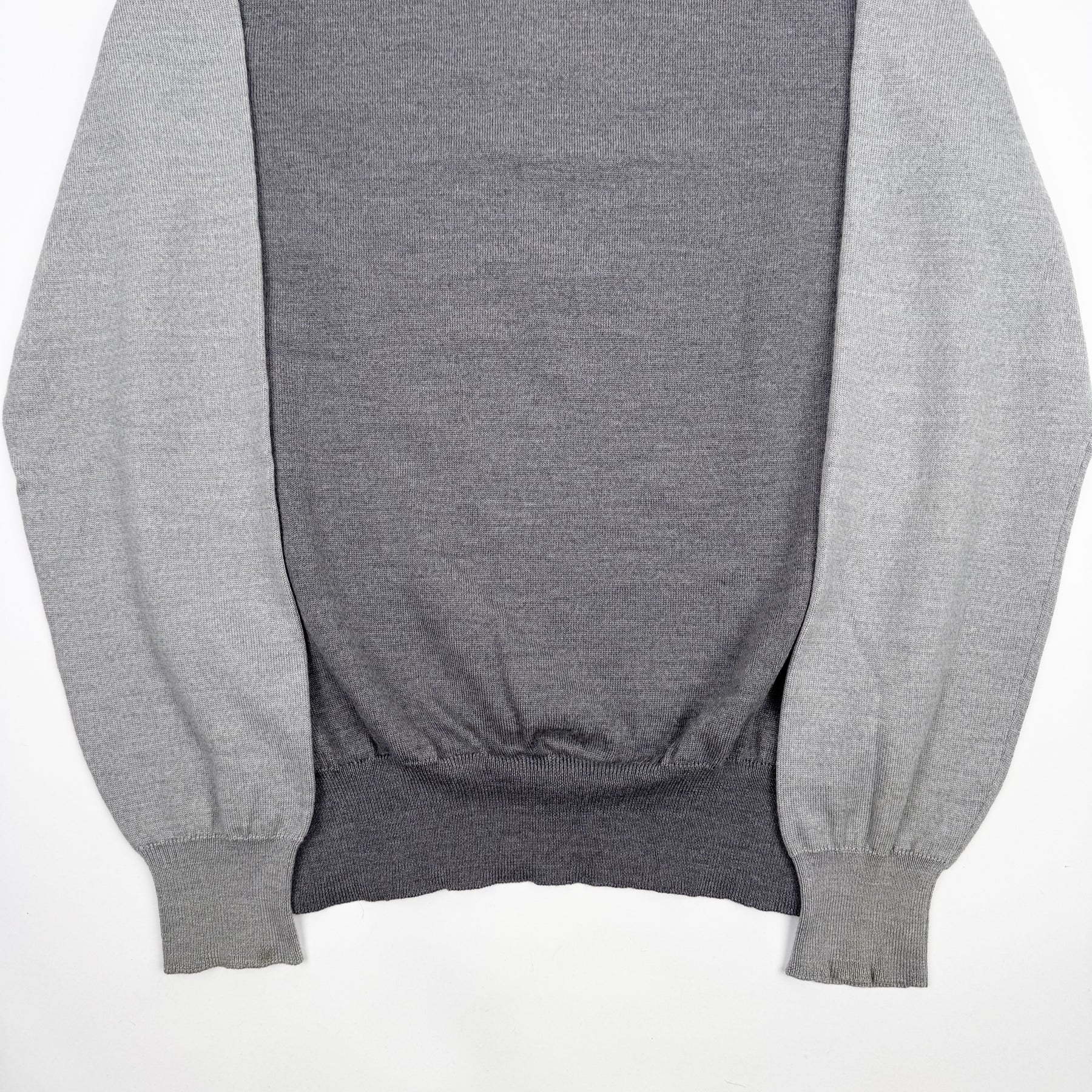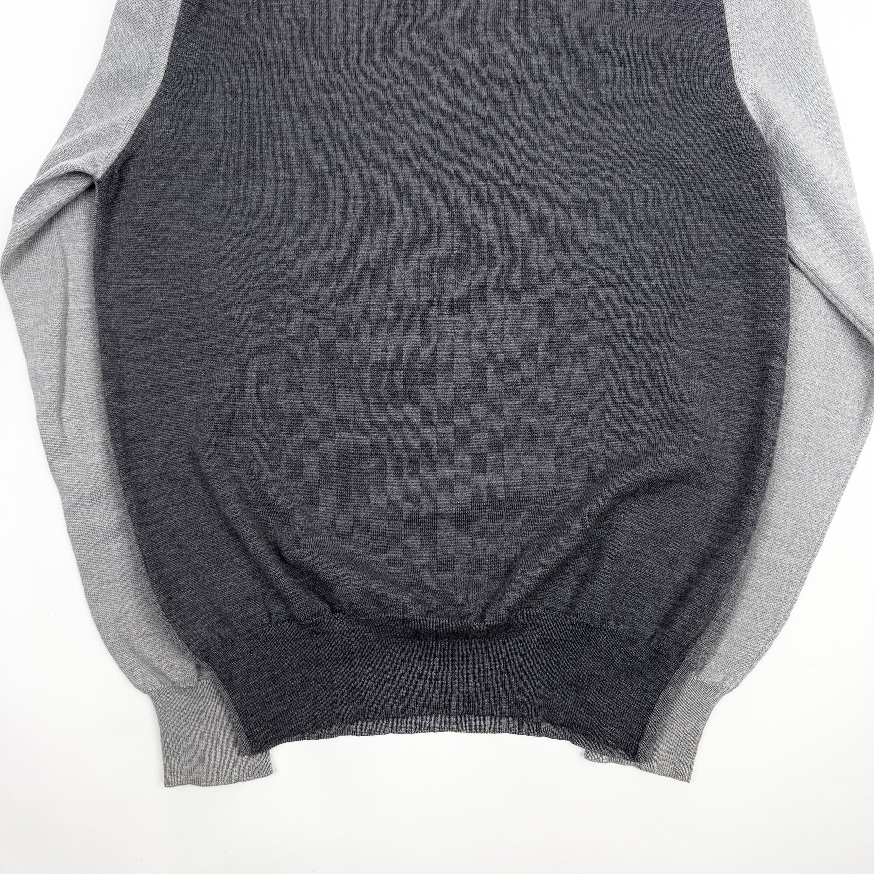 • - Gray wool knit fabrication w/ contrasting front, back and sleeves