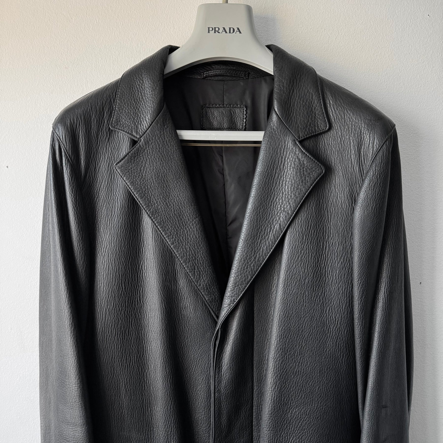 Prada 2000’s Black Deer Leather Insulated Overcoat
