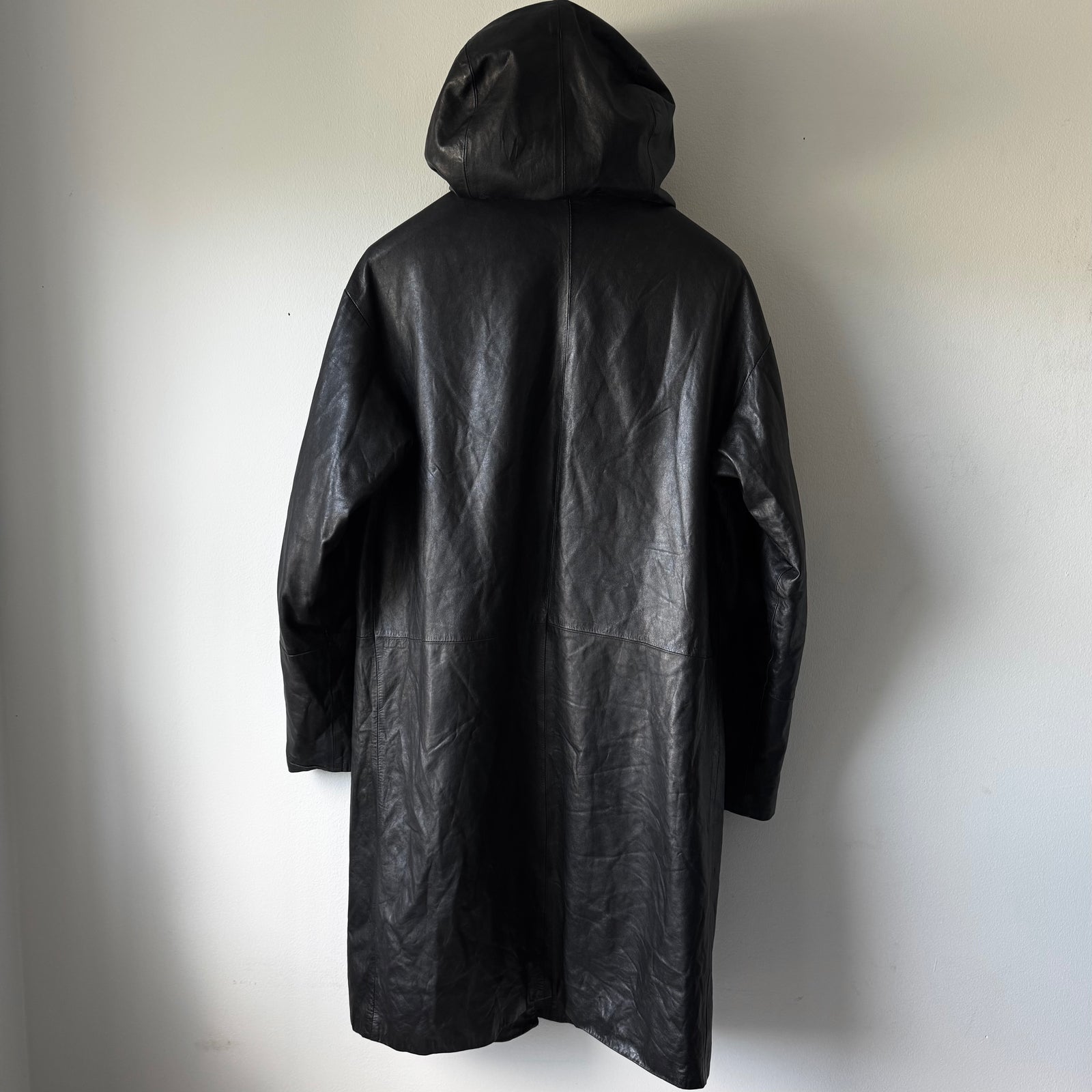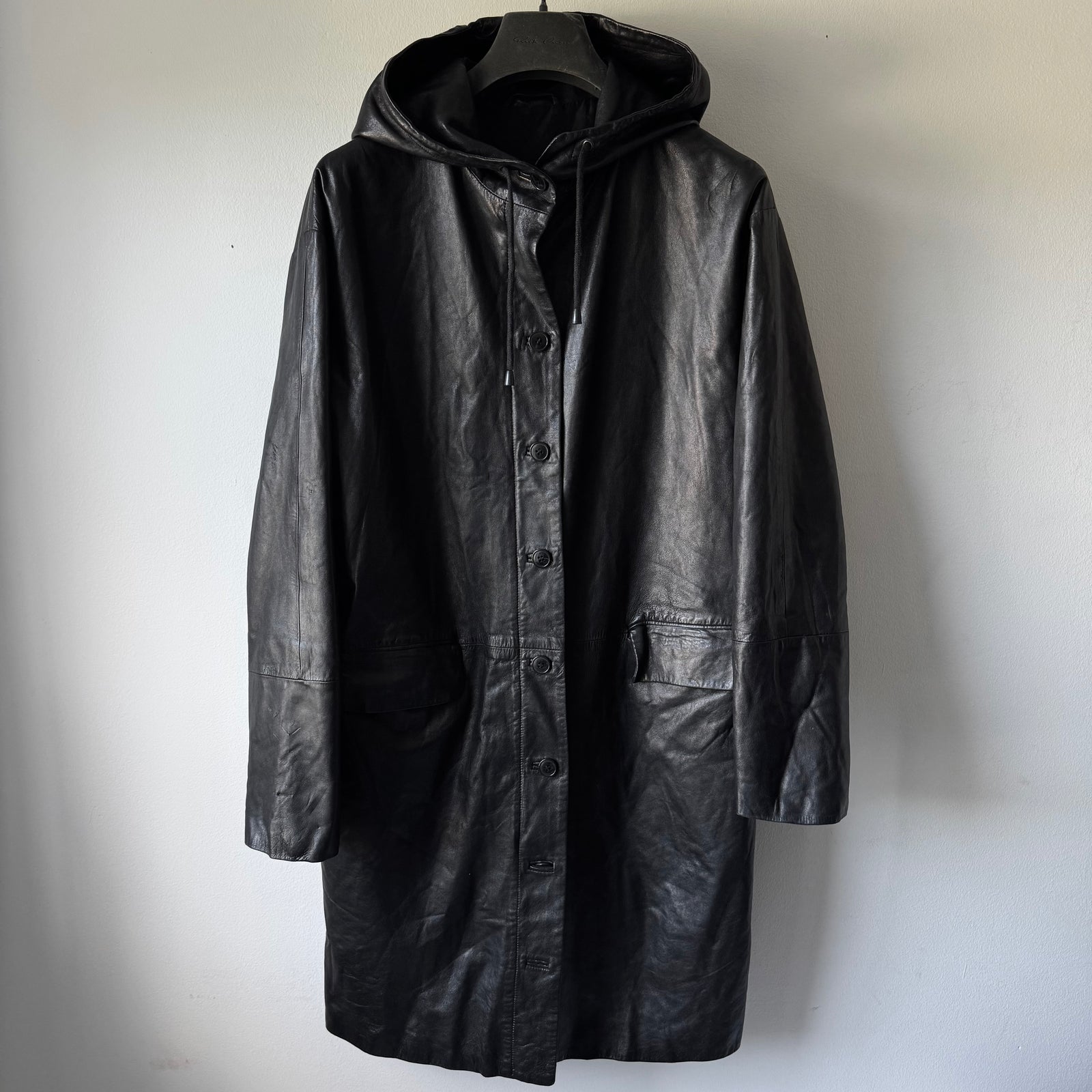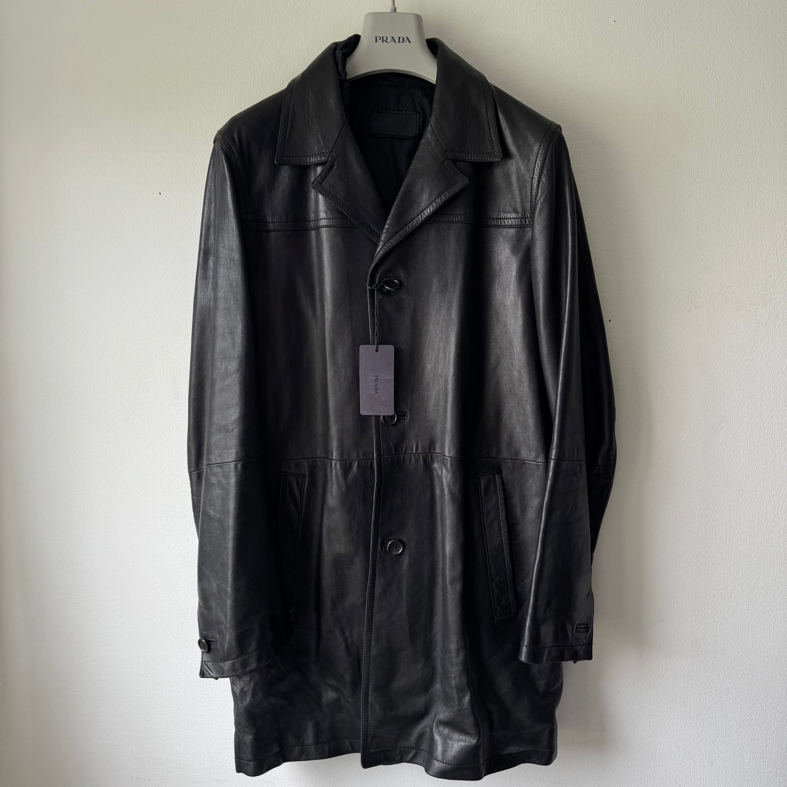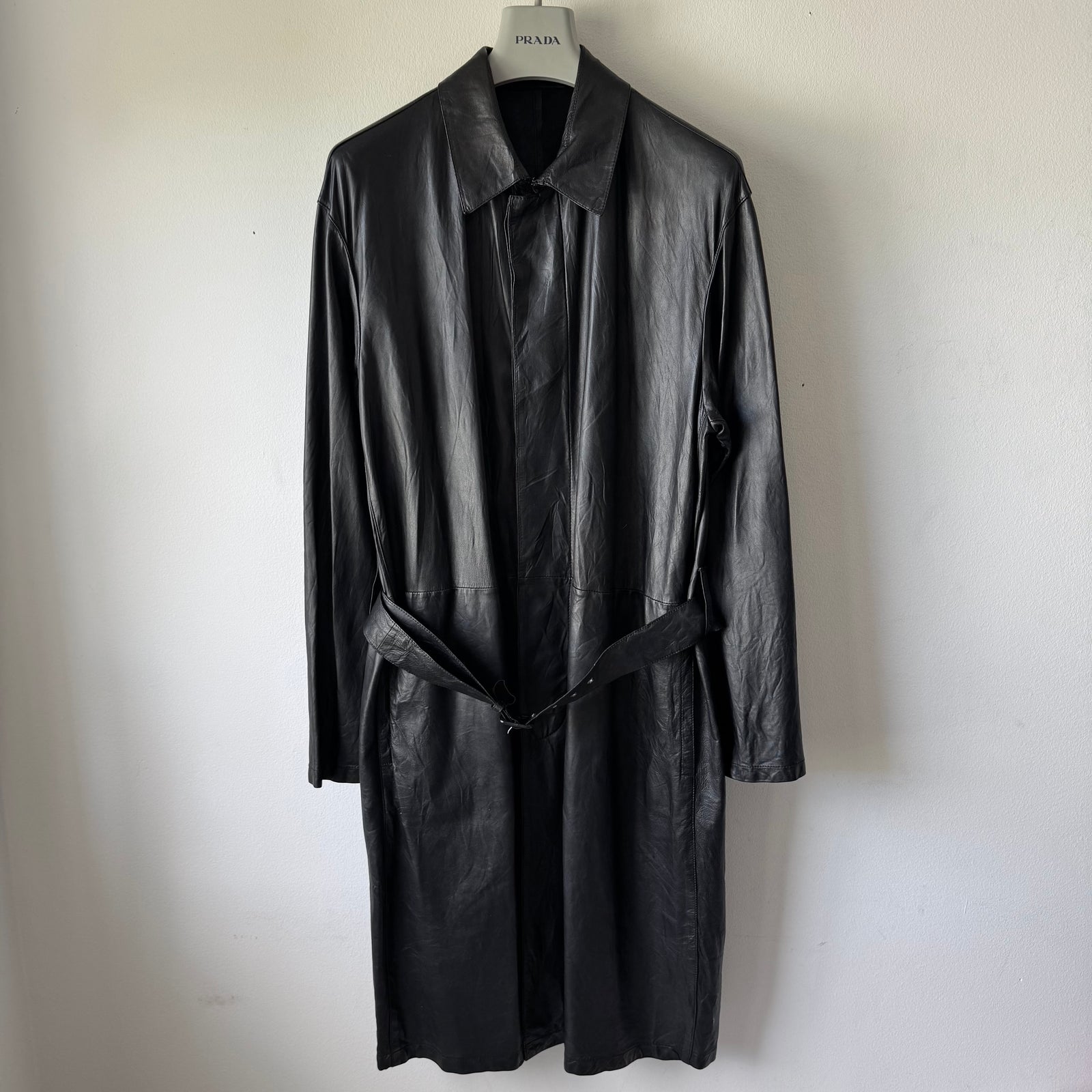 Prada FW2004 Black Lamb Nappa Leather Long Trench Coat