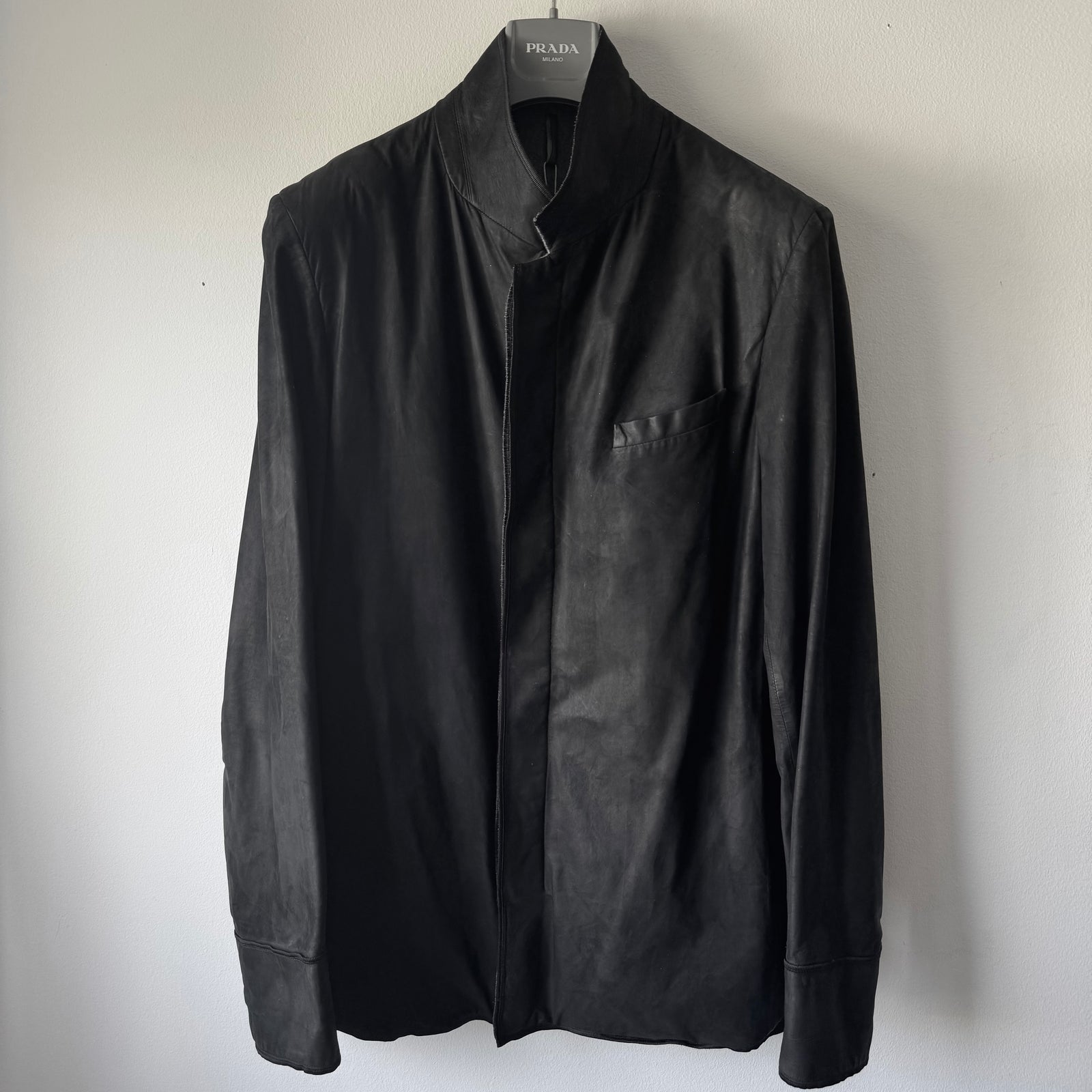 Dior Homme Black Leather Cashmere Lined Shirt Jacket