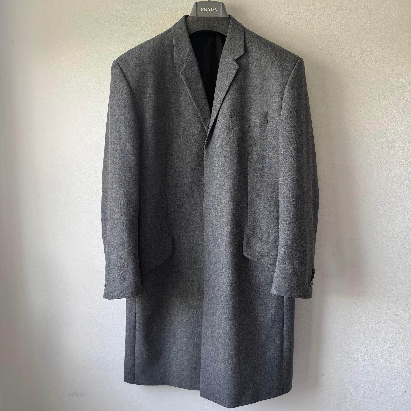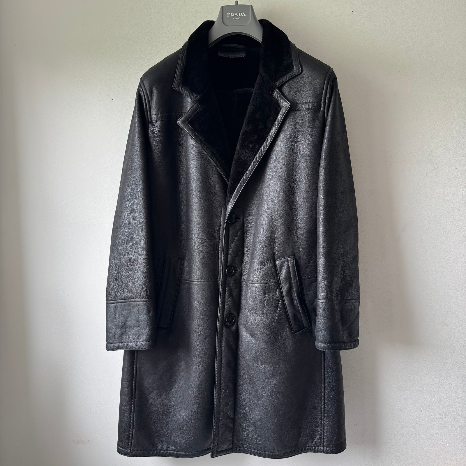 Prada FW2006 Black Lined Button-Up Leather Overcoat Jacket