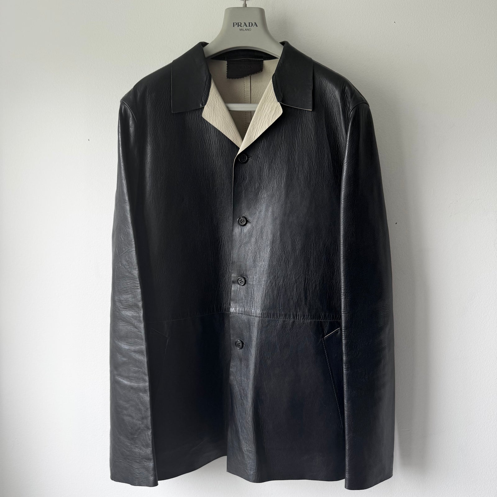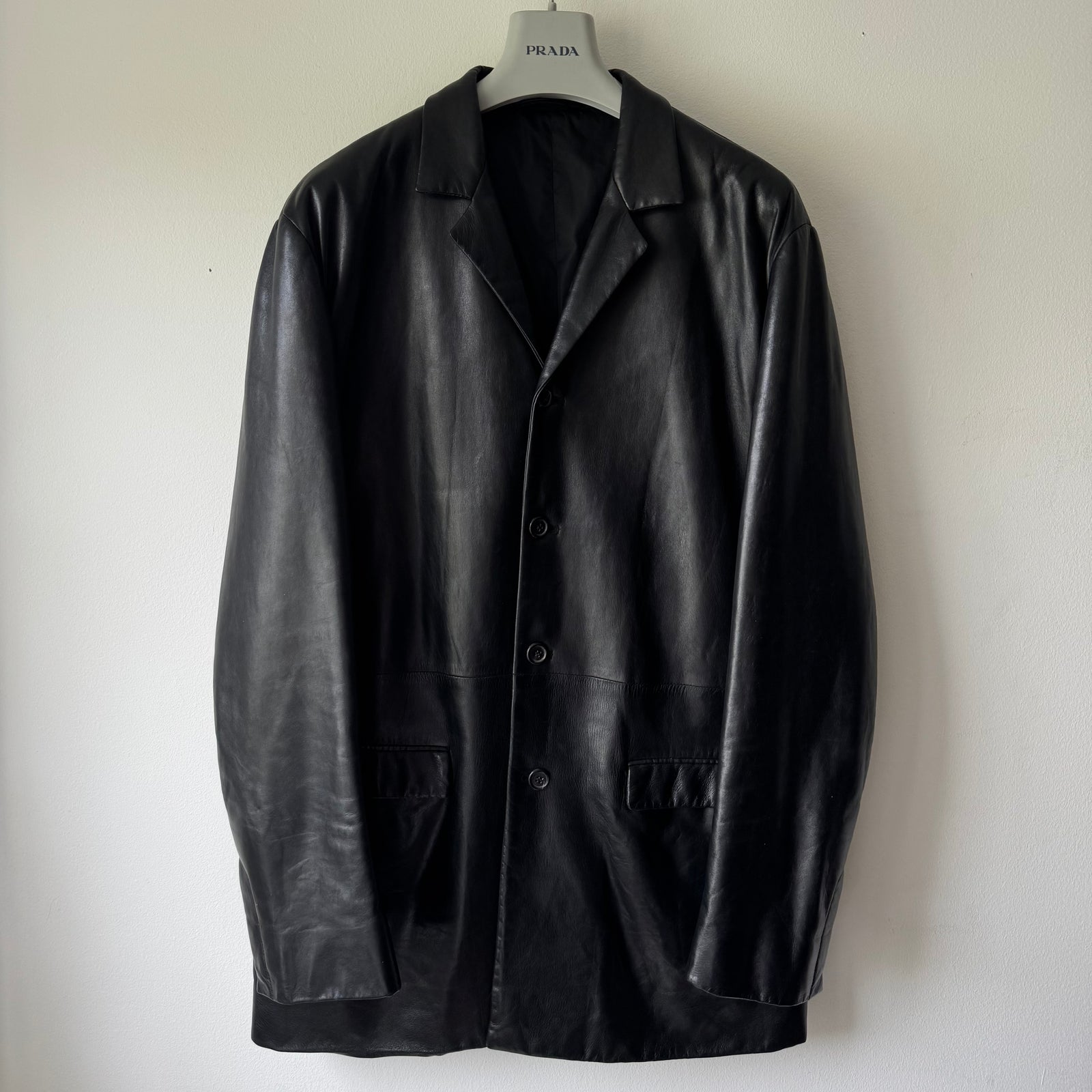 Prada FW1998 Black Lamb Leather Button-Up Overcoat Jacket