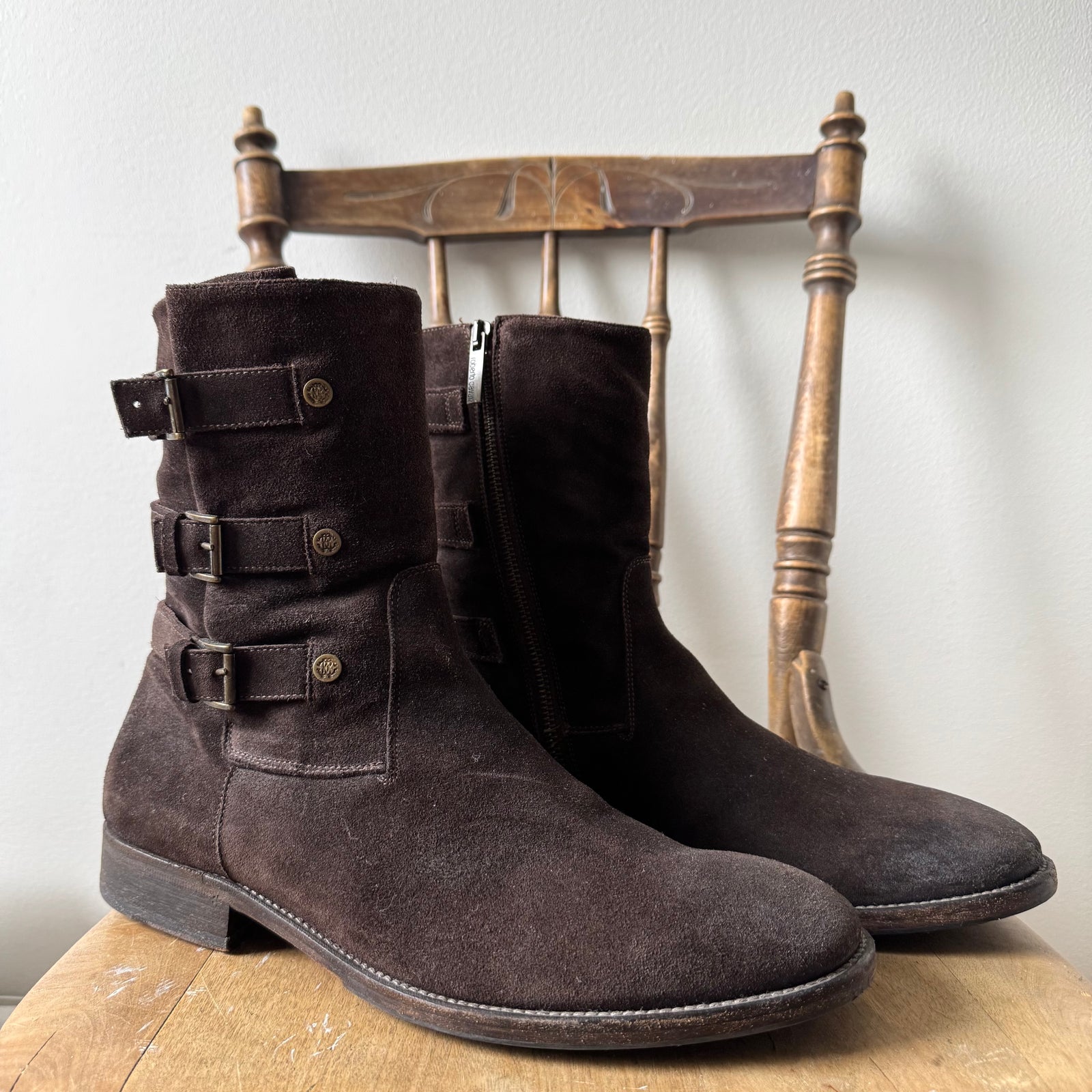 Roberto Cavalli 2000’s Brown Suede Leather Biker Boots