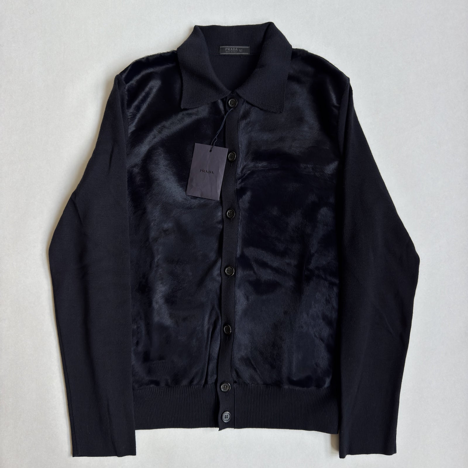 Prada FW2000 Runway Hair On Hide Leather Button-Up Knit