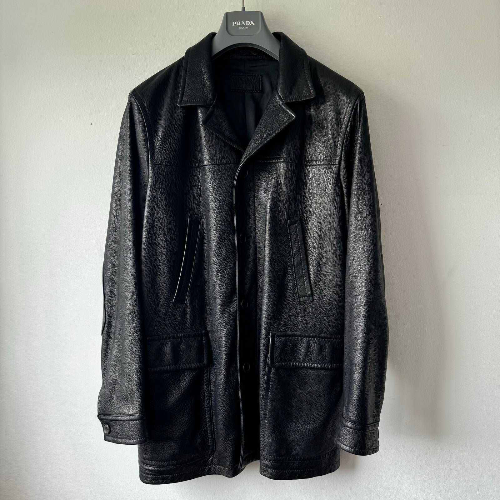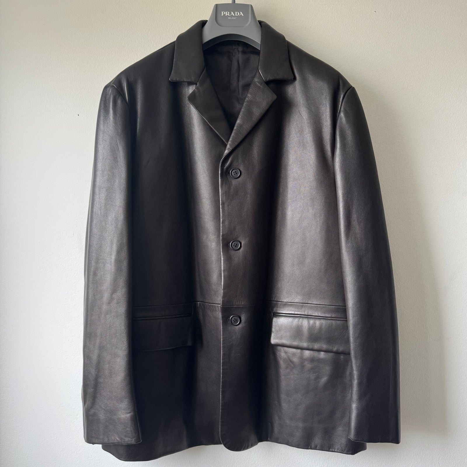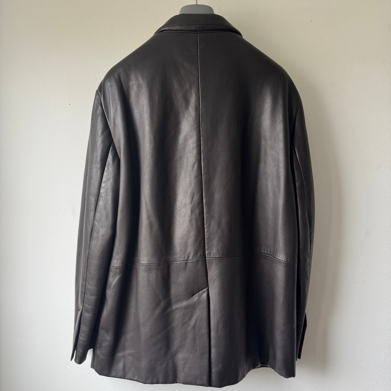 Prada FW1998 Silk Lined Button-Up Leather Overcoat Jacket