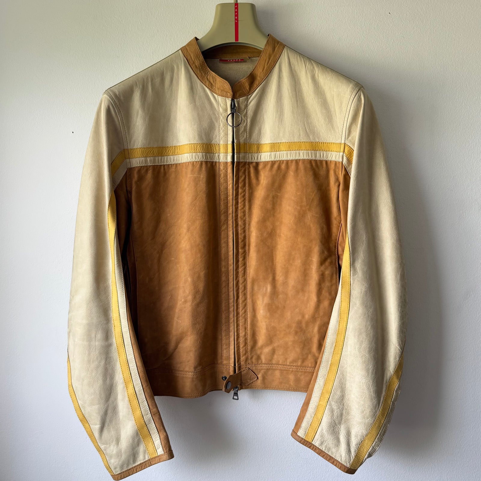 Prada Linea Rossa 2000’s Cropped Cafe Racer Moto Leather Jacket