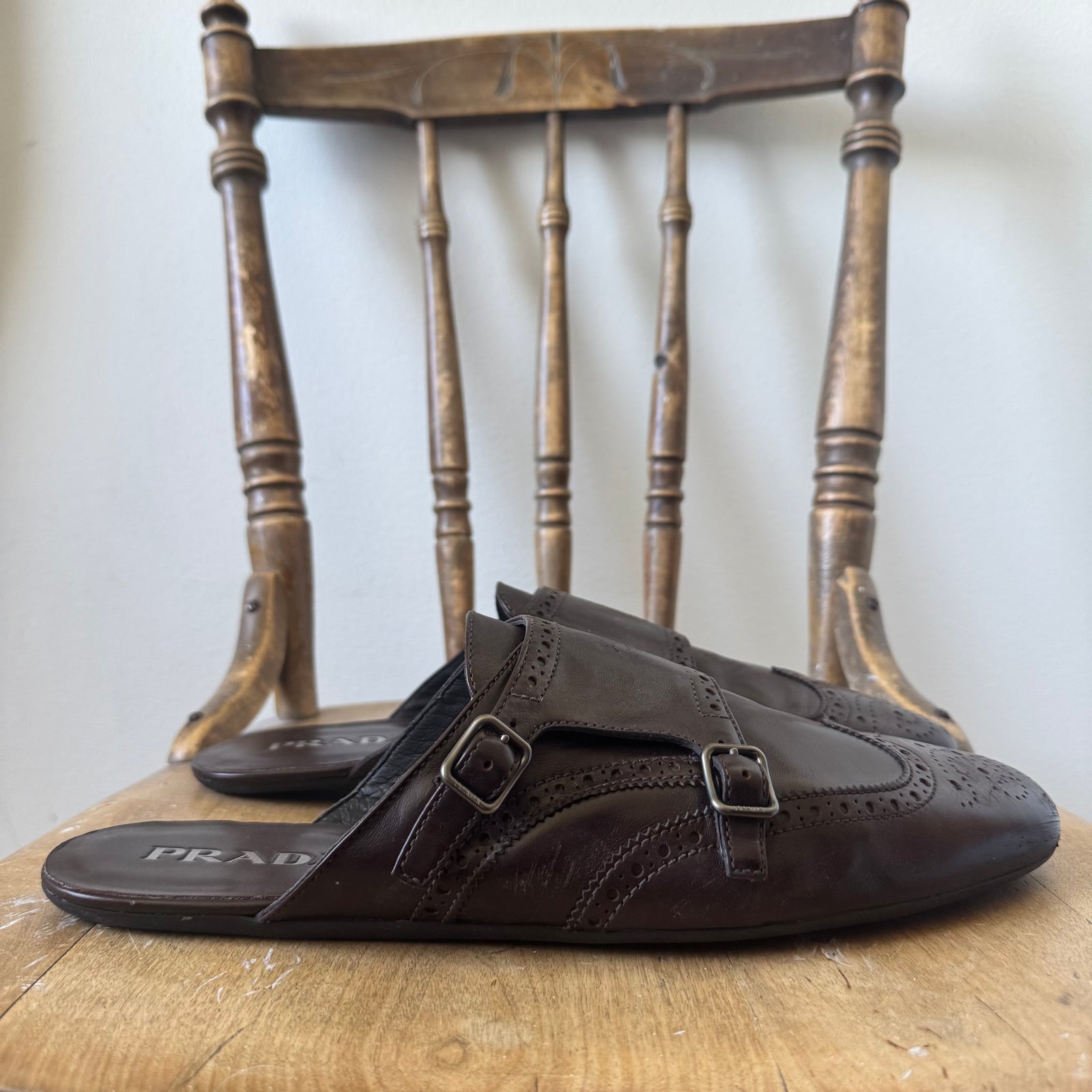 Prada SS2025 Ebony Shuffle Double Monk Strap Leather Mules
