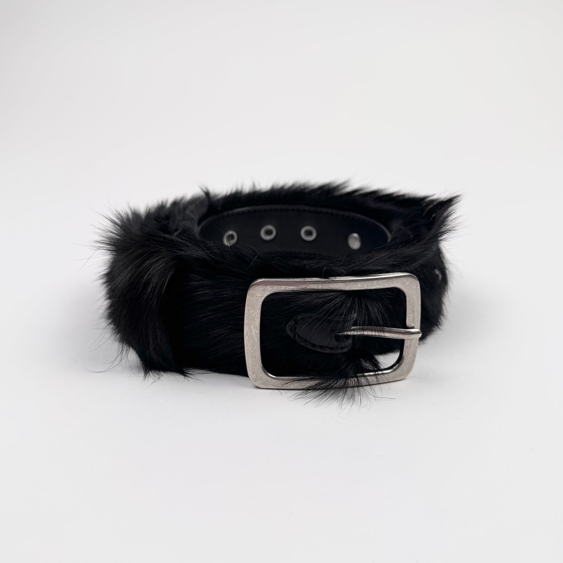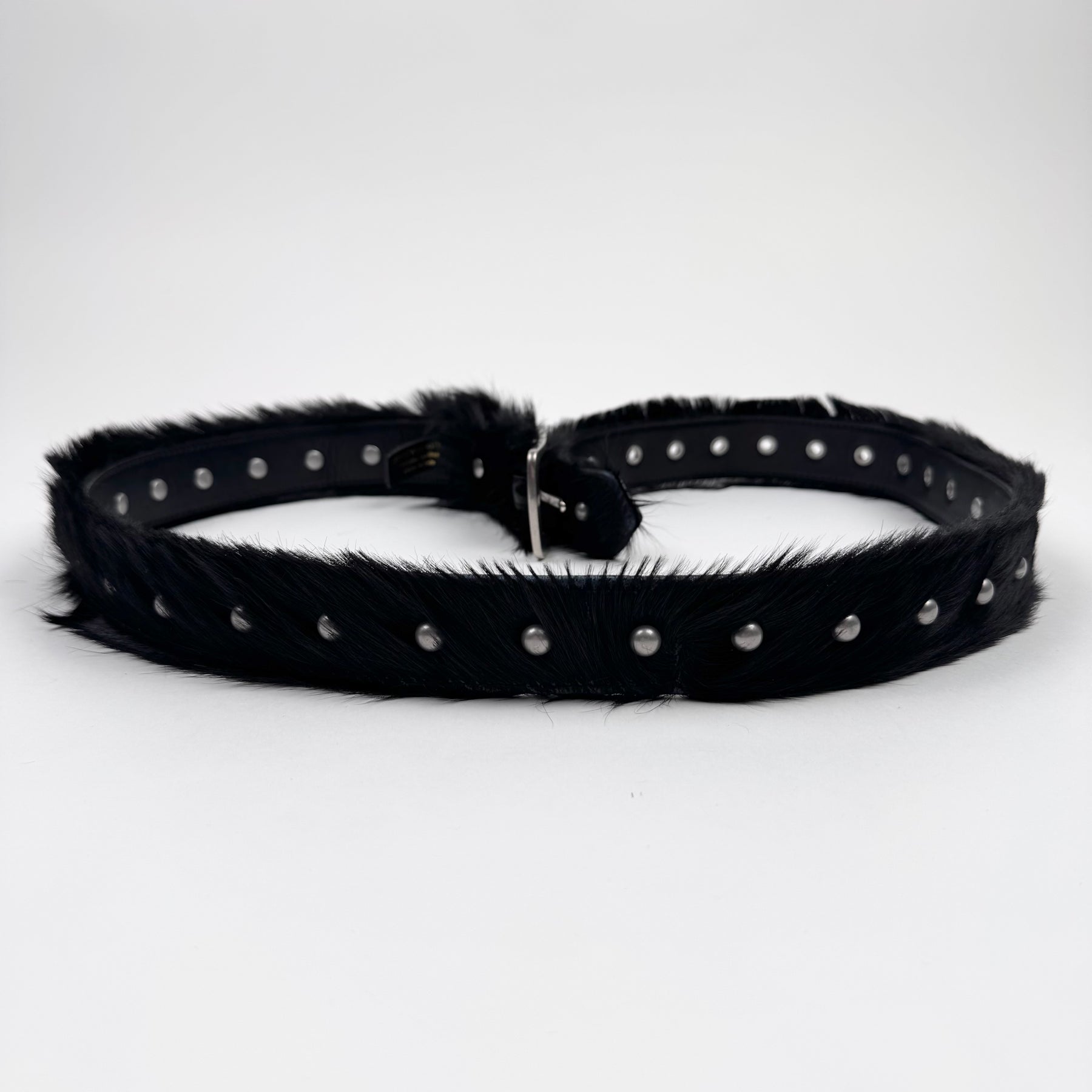 Dries Van Noten FW2022 Black Studded Fur Belt
