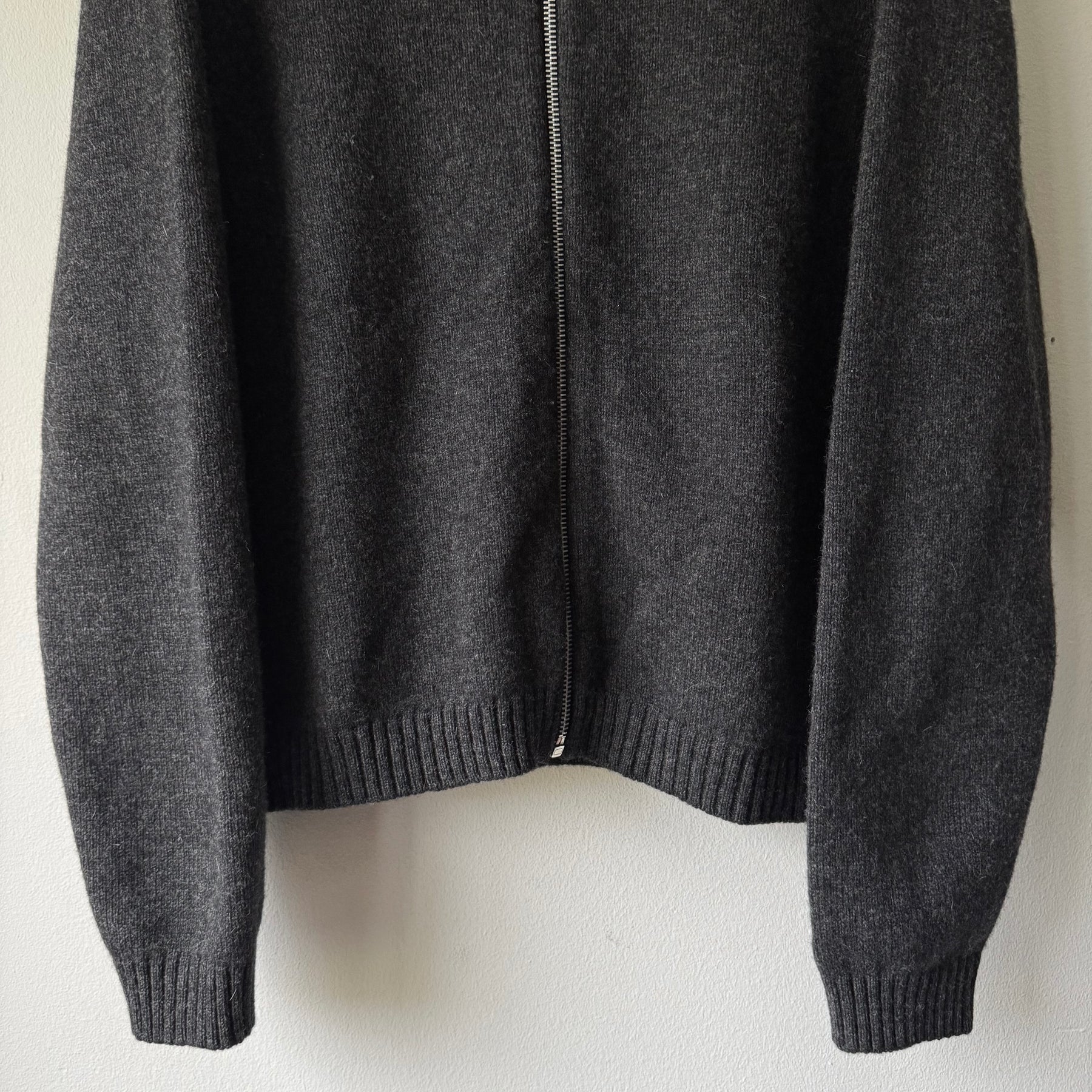 Helmut Lang 1998 Gray Knitted Wool Polo Zip-Up Sweater