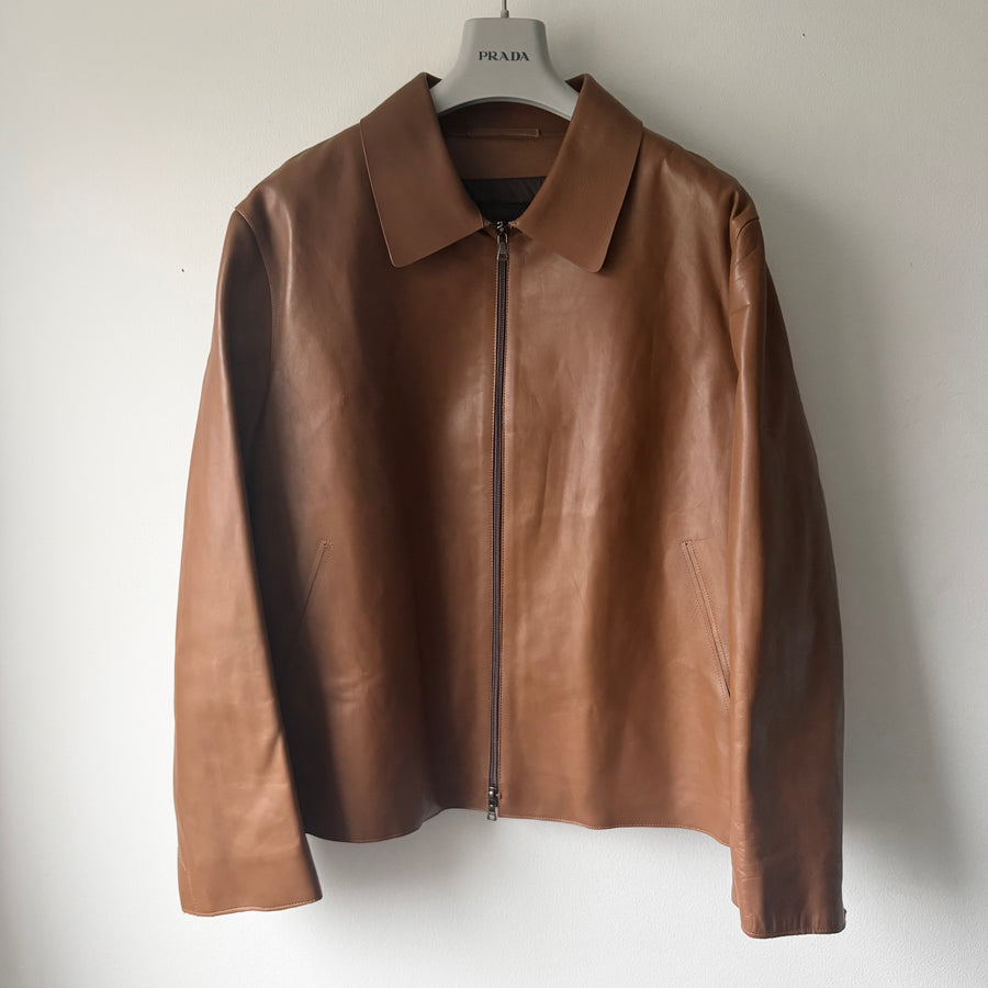 Prada FW2000 Tan Brown Insulated Calf Leather Zip-Up Blouson Jacket