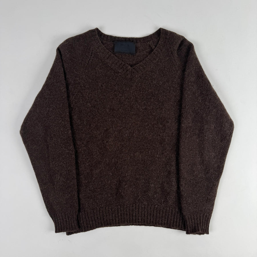 Prada 1990's Brown Alpaca/Wool Blend Chunky Knit V-Neck Pullover