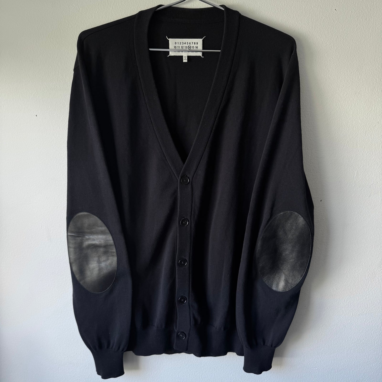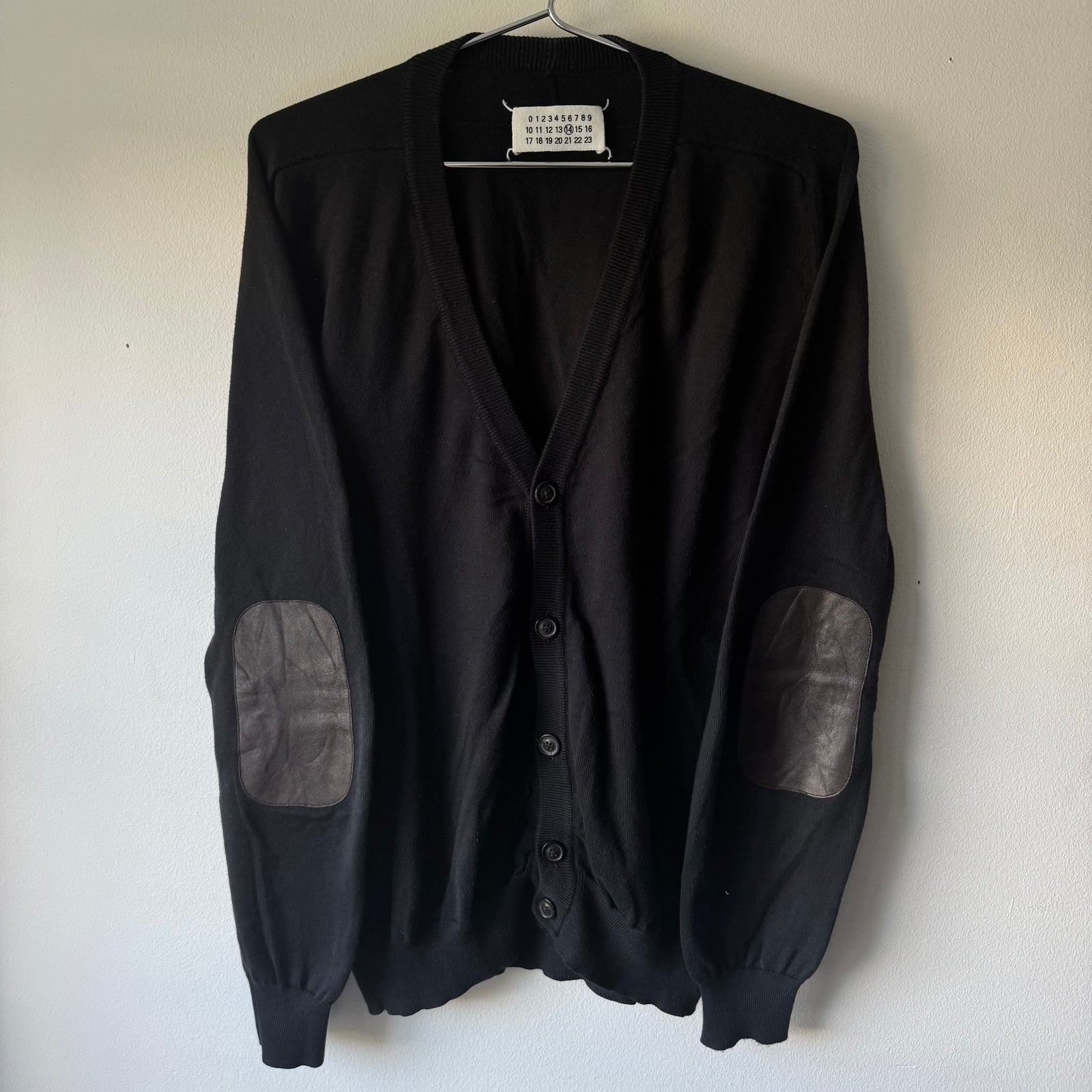SS2011 Maison Martin Margiela Black Cotton Knit Elbow Patch Button-Up Cardigan