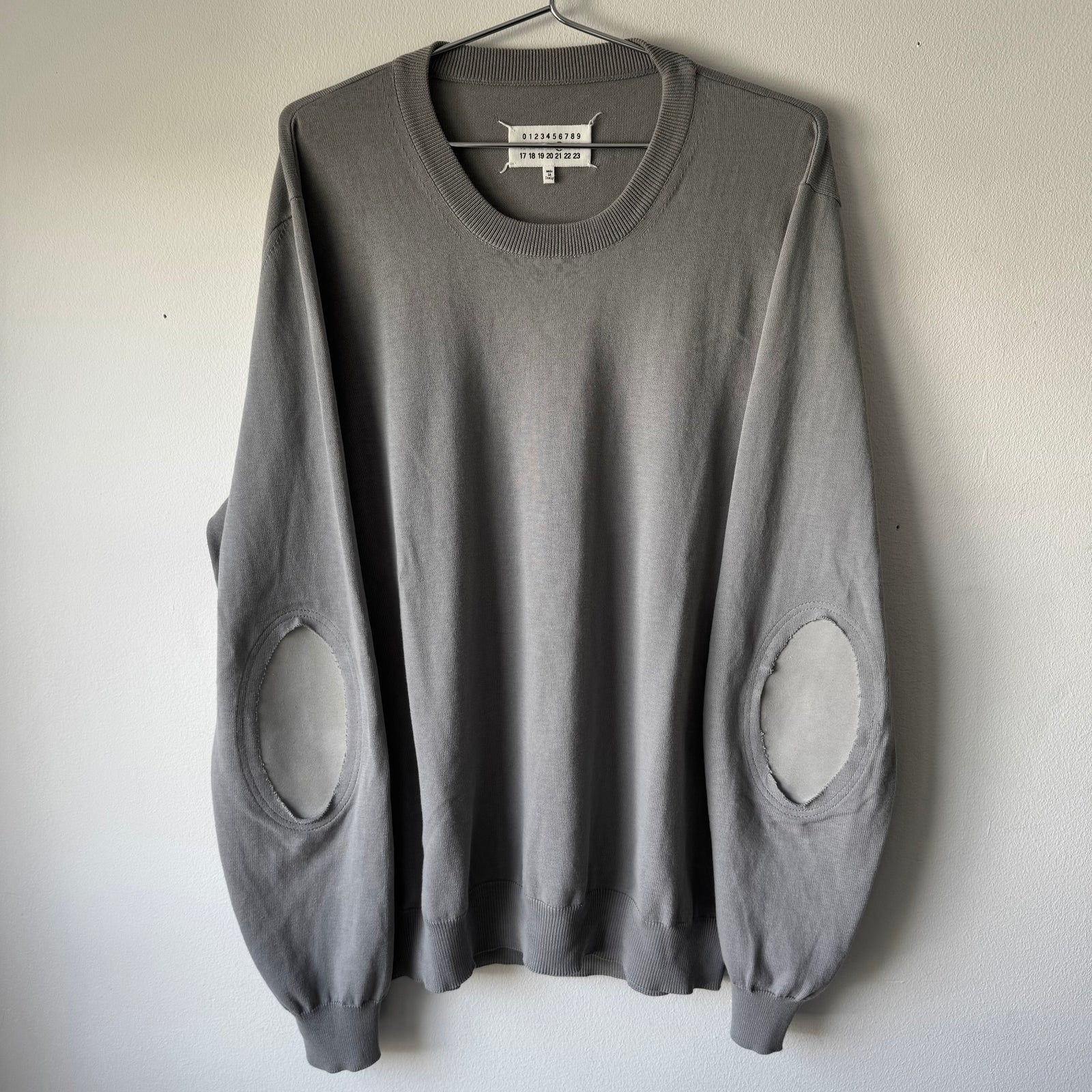 SS2018 Maison Margiela Gray Cotton Pullover Elbow Patch Knit Sweater