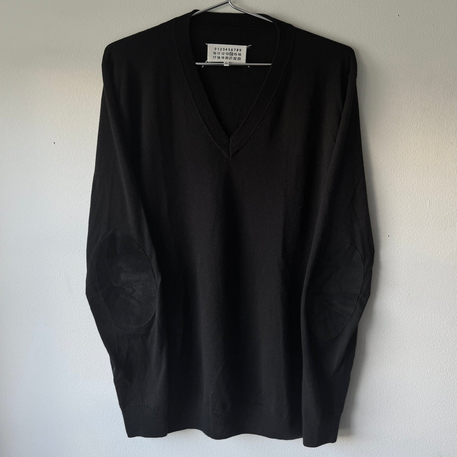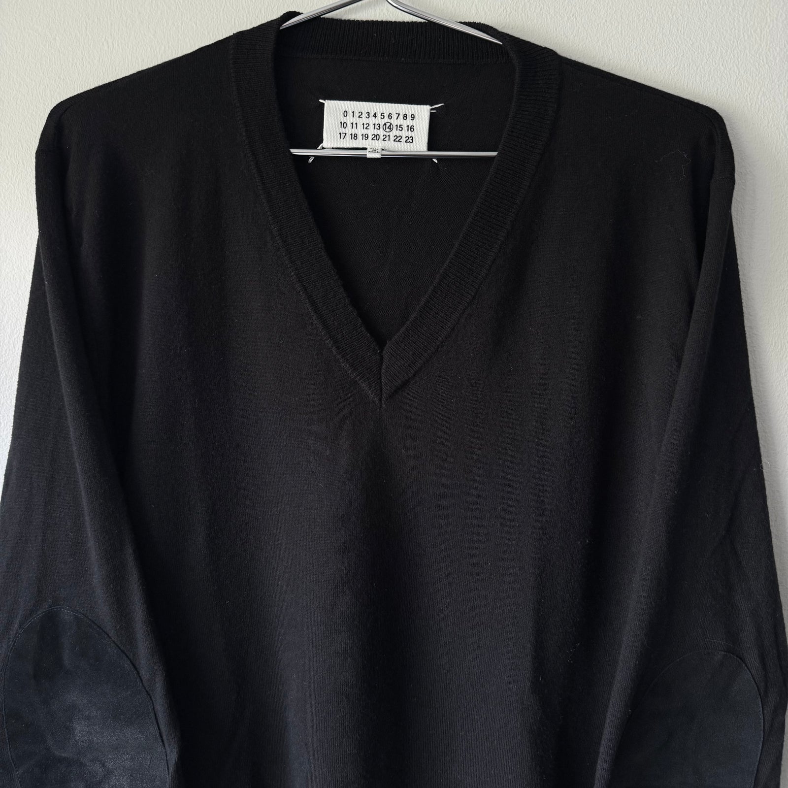 AW2015 Maison Margiela Black Wool/Cotton V-Neck Pullover Elbow Patch Knit Sweater