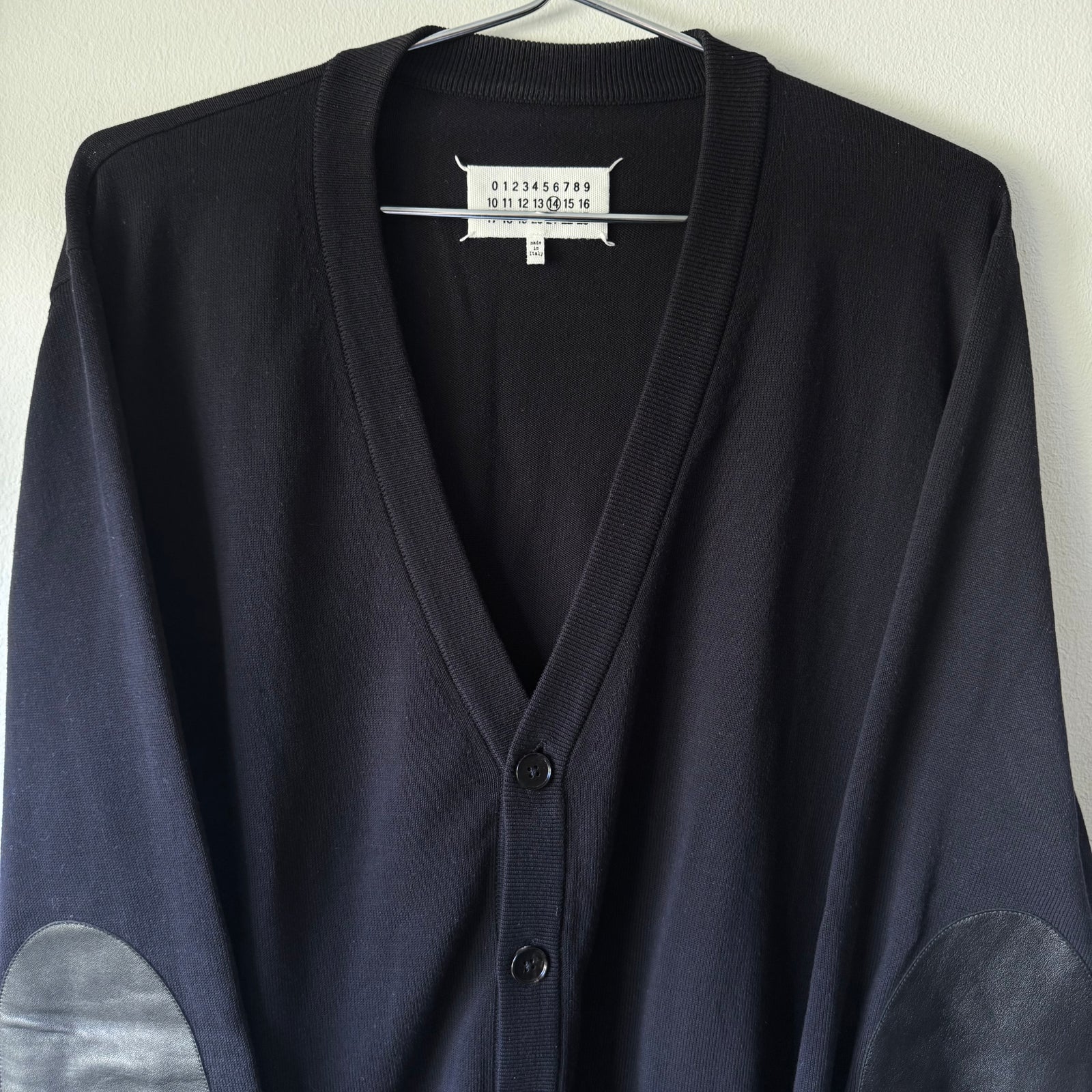 SS2015 Maison Martin Margiela Navy Cotton Knit Elbow Patch Button-Up Cardigan