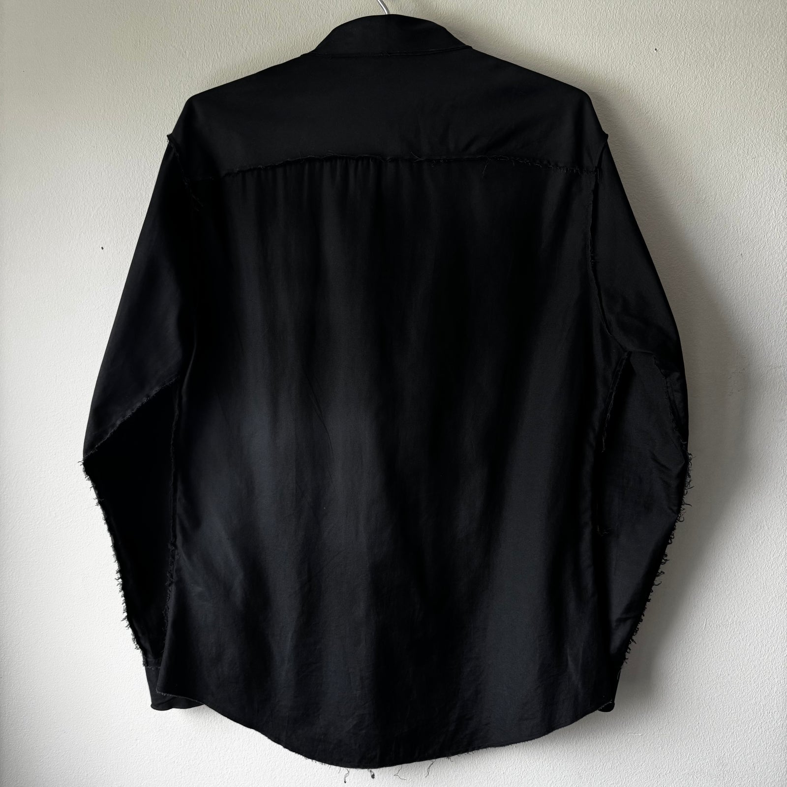 Yohji Yamamoto Black Cotton Pleated Front Raw Edge Button-Up Shirt