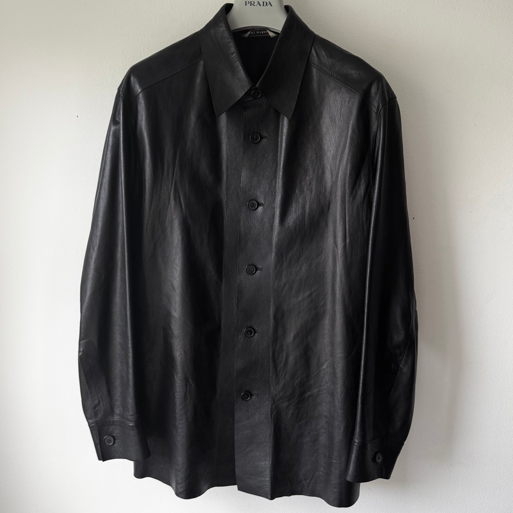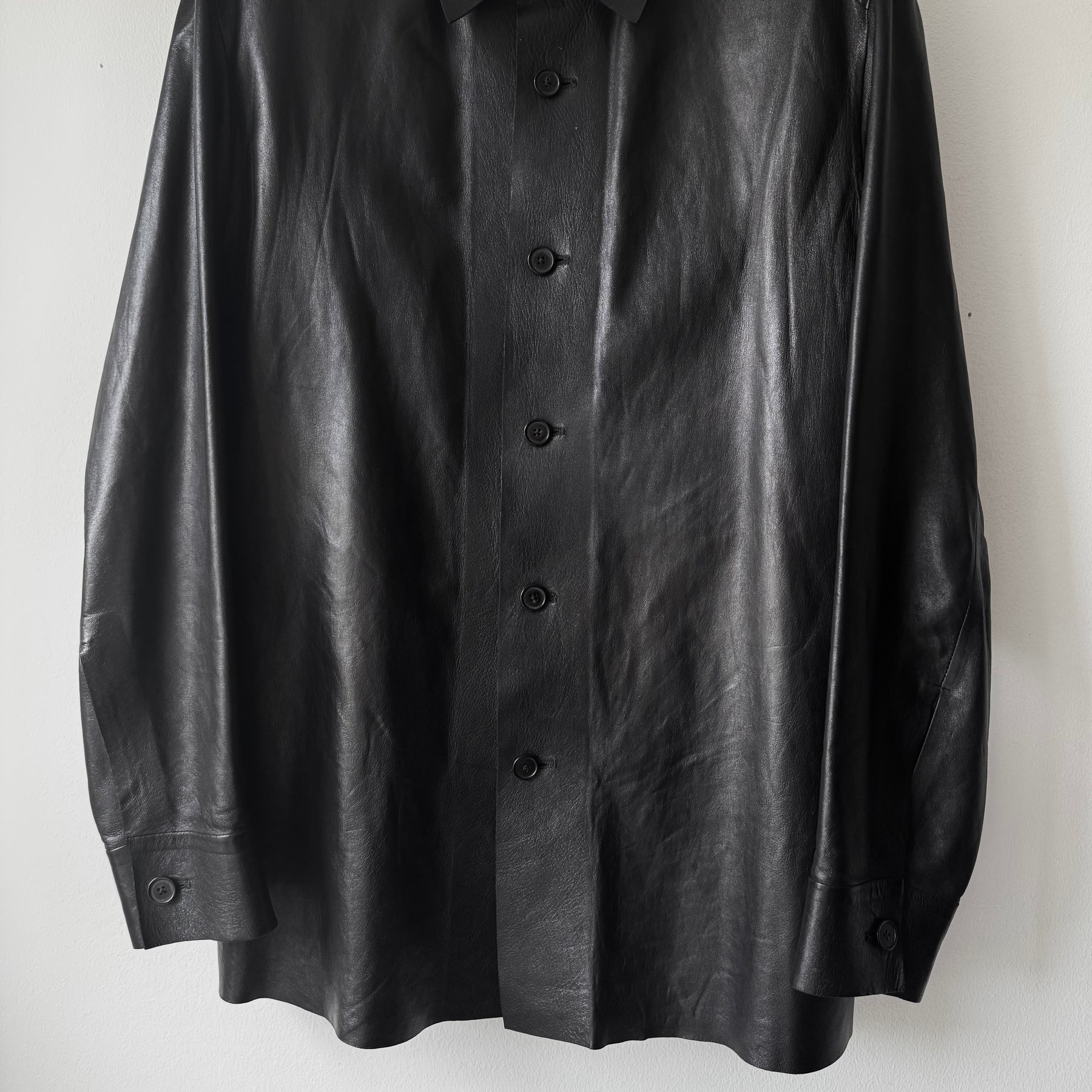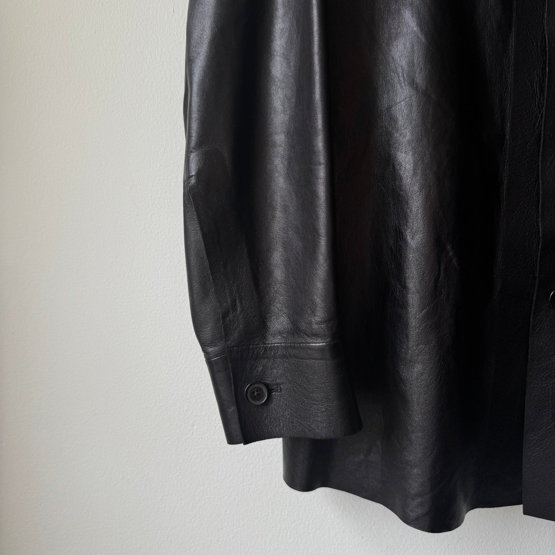Hermes 2000's Unlined Black Lamb Leather Shirt Jacket